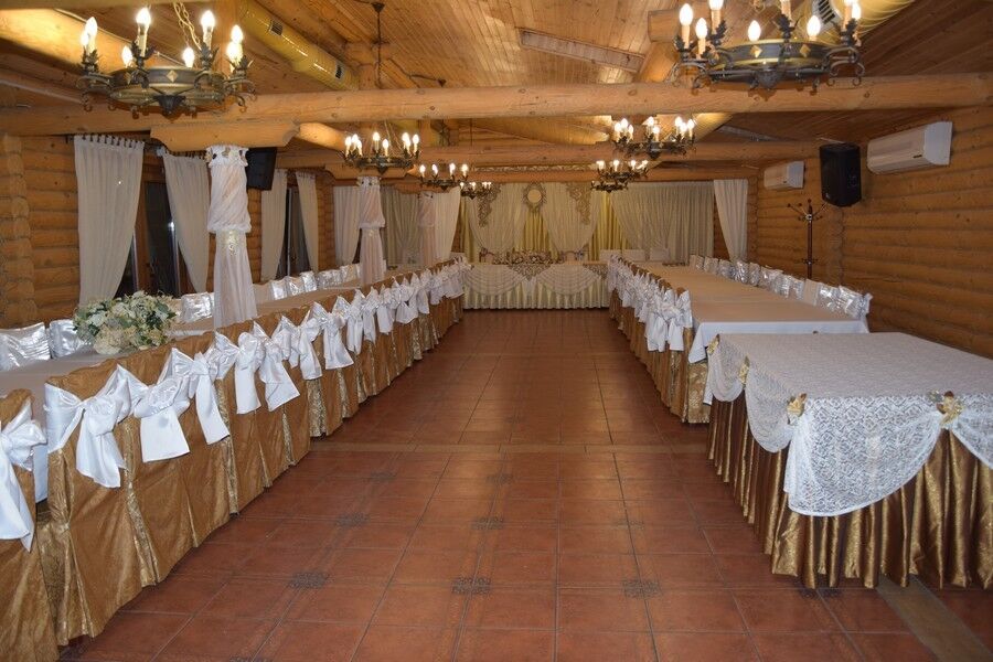 При замовленні пишного весільного бенкету (від 100 осіб) в подарунок від закладу пропонується номер-люкс для молодят.